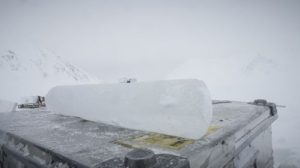 Una carota di ghiaccio estratta per lo studio (credits Riccardo Selvatico)