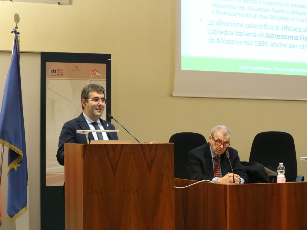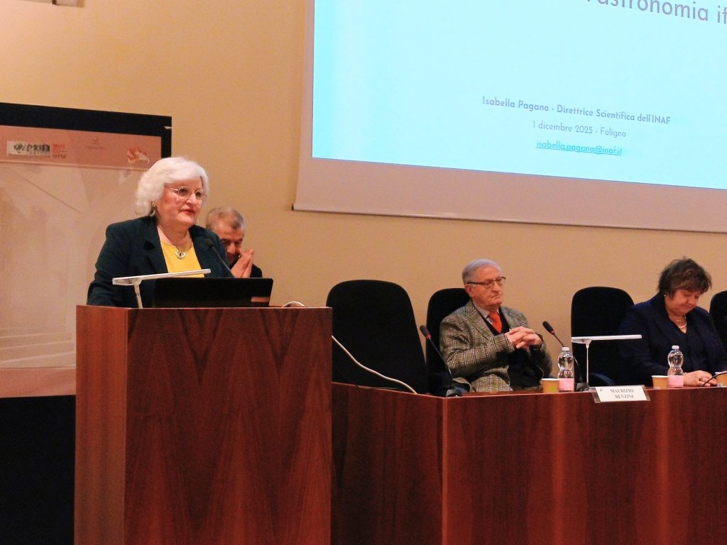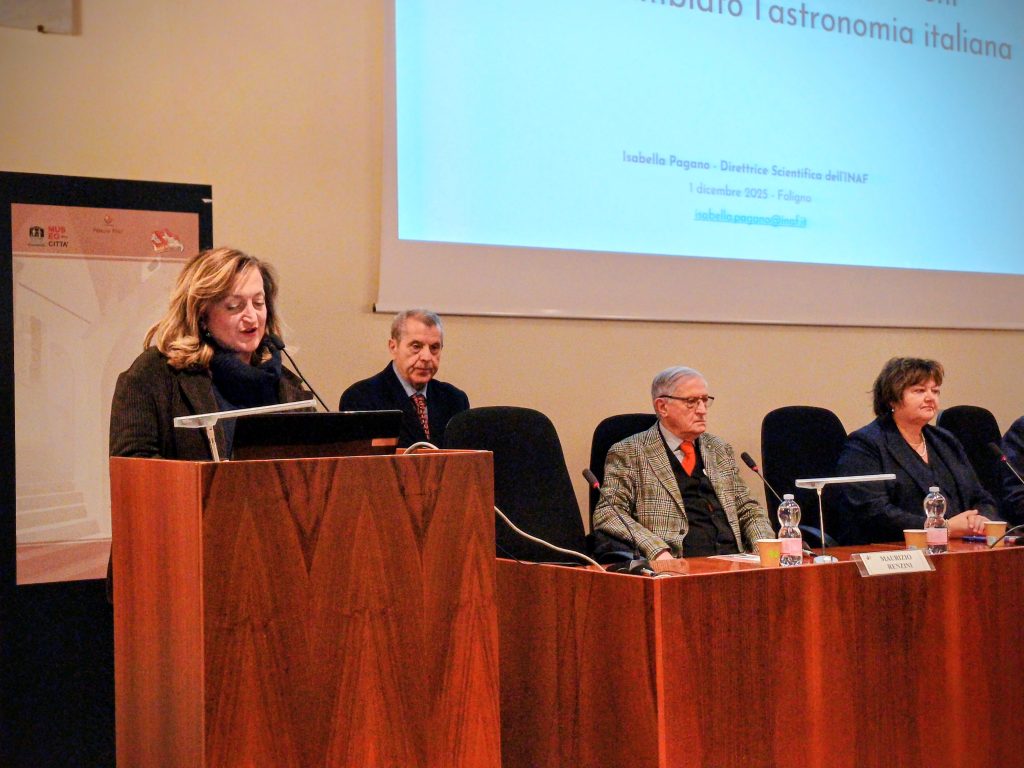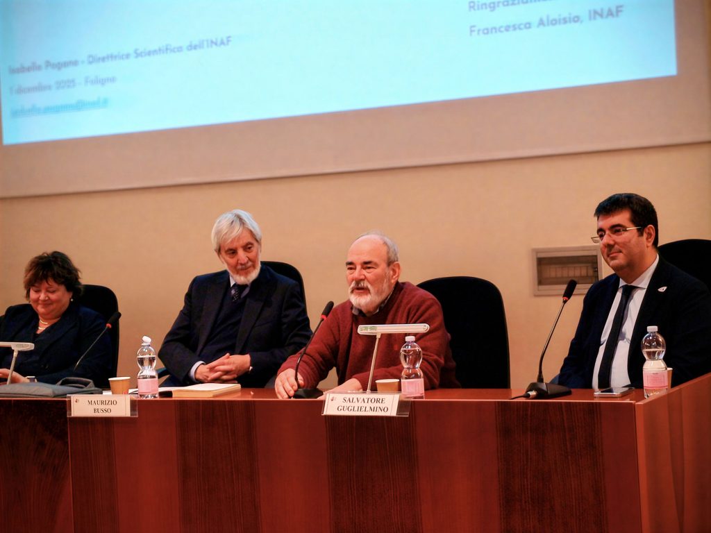 Nella foto: Isabella Pagano - Direttrice Scientifica dell’INAF; Piero Bianucci, scrittore e giornalista scientifico; Maurizio Busso - già Professore Ordinario di Astrofisica, Università degli Studi di Perugia; Salvatore Guglielmino - responsabile Alta Formazione INAF