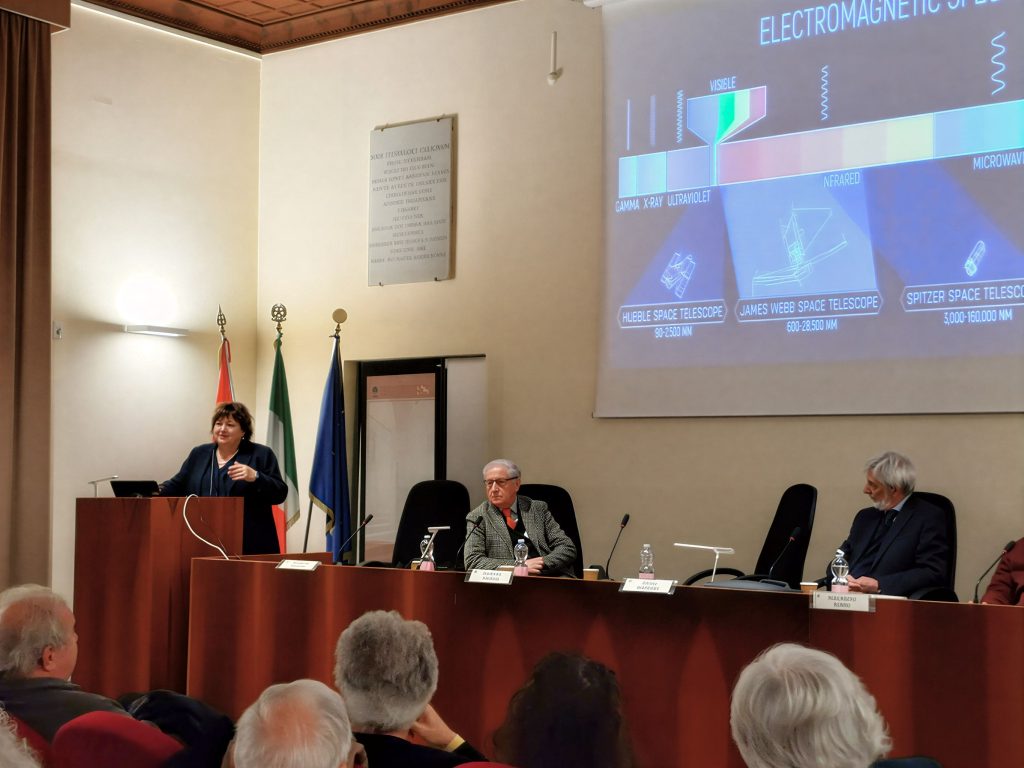 Nella foto: Isabella Pagano - Direttrice Scientifica dell’INAF; Maurizio Renzini - Presidente del Laboratorio di Scienze Sperimentali; Piero Bianucci, scrittore e giornalista scientifico