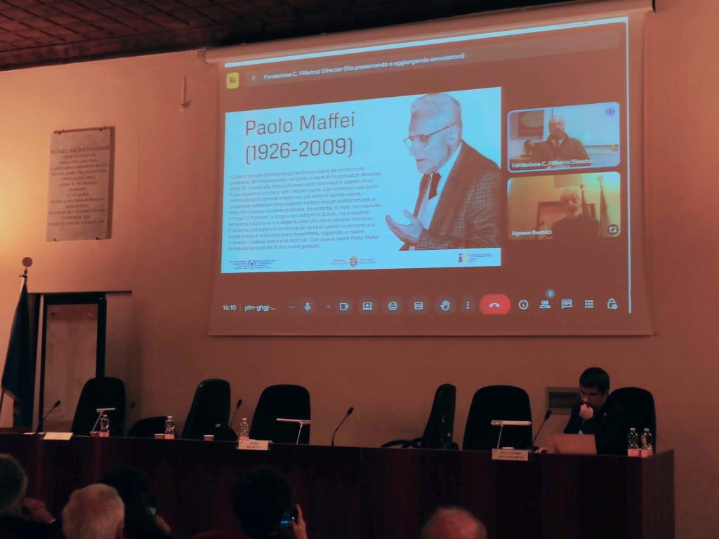 Nella foto: Marta Maffei, figlia dell'astrofisico Paolo Maffei; Pierluigi Mingarelli – Direttore del Laboratorio di Scienze Sperimentali; Maurizio Renzini - Presidente del Laboratorio di Scienze Sperimentali; Isabella Pagano, Direttrice Scientifica dell’INAF