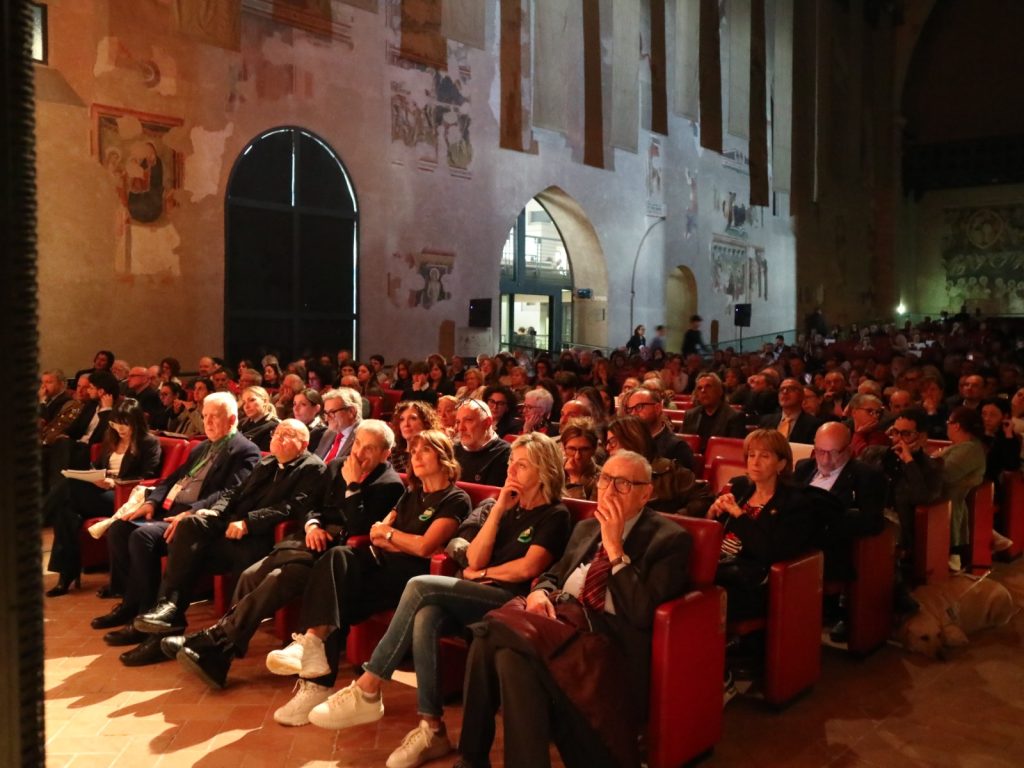 Dopo i primi incontri che hanno accompagnato la giornata di mercoledì 15 aprile, è stata inaugurata ufficialmente la XV di “Festa di Scienza e Filosofia – Virtute e Canoscenza”, che in questo 2026 ha deciso di accendere i riflettori sulle prospettive, le speranze e i rischi di un nuovo umanesimo scientifico, come recita il titolo scelto per questa edizione. Il taglio del nastro, alla presenza delle istituzioni, delle associazioni e dei partner della manifestazione, si è tenuto questo pomeriggio (giovedì 16 aprile) con la consueta cerimonia di apertura ospitata all’Auditorium “San Domenico” di Foligno. Cerimonia che ha preso il via con l’esibizione del coro dell’Istituto comprensivo Foligno 5 che, diretto dalla professoressa Mariella Battistelli, ha presentato il brano “Il valzer della scienza”, e con la lettura di alcuni brani del XXXIII Canto della “Divina Commedia” di Dante ad opera di Enrico Sciamanna. Dopo i saluti istituzionali, a prendere la scena è stata la conferenza “San Francesco e l’affermarsi dei valori filantropici alla base del pensiero scientifico”. Relatori d’eccezione sono stati per l’occasione lo storico medievista Franco Cardini, il vescovo emerito delle Diocesi di Foligno e di Assisi-Nocera Umbra-Gualdo Tadino, monsignor Domenico Sorrentino, la presidente della Regione Umbria, Stefania Proietti, e il filosofo della scienza Silvano Tagliagambe, che ha ricordato anche la recente scomparsa del filosofo folignate Dario Antiseri. A loro il compito di esplorare il contributo dell’umanesimo di San Francesco nel processo conoscitivo che ha portato al passaggio dal mago, custode di antichi segreti e saperi, al pensiero scientifico. Nel corso della cerimonia di apertura è stato, inoltre, conferito il giglio d’oro 2026 al professor Pierluigi Mingarelli, direttore del Laboratorio di Scienze Sperimentali di Foligno, associazione che da quindici anni organizza la Festa. A conferirglielo la Pro Foligno del presidente Luca Radi per l’importante contributo culturale e scientifico offerto al territorio con la propria attività. “Questa onorificenza – ha detto il vice presidente della Pro Foligno, Mario Timio leggendo le motivazioni – è un segno di riconoscenza per il contributo offerto alla città di Foligno e alla valorizzazione del suo patrimonio intellettuale. Pierluigi Mingarelli ha dato vita a un luogo di incontro di saperi, contribuendo in modo duraturo alla crescita culturale della comunità. La sua è sempre stata una presenza discreta e feconda, capace di lasciare un segno vivo nella coscienza culturale della nostra città”.